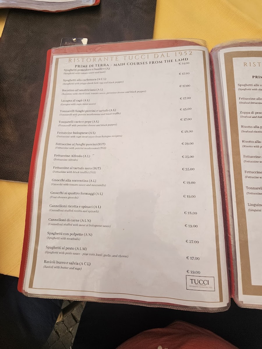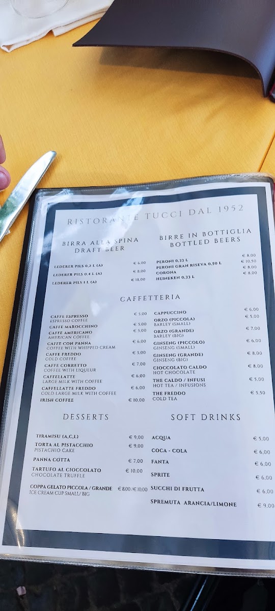 Welcome to Tucci, a hidden gem nestled in the vibrant heart of Piazza Navona, Rome. This charming restaurant offers an authentic Italian dining experience that delights both locals and travelers alike. Here, the magic begins with exceptional dishes, like the unforgettable classic Roman tomato sauce pasta—praised by patrons as the best they've ever had. The menu embraces fresh ingredients, showcased in delightful starters like burrata and prosciutto, and comforting meatballs that evoke a sense of home.